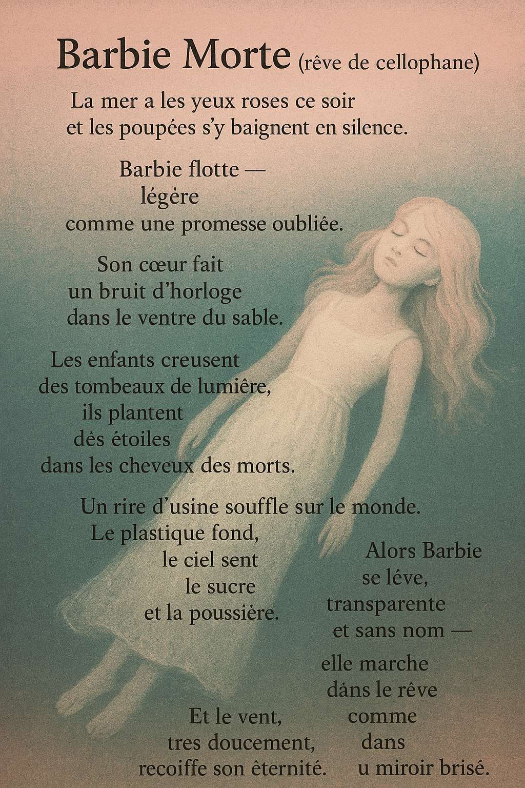 (Oui). Très bien. L’idée d’une « Barbie Morte » — même si elle semble absurde ou provocatrice — peut se lire à plusieurs niveaux symboliques ou satiriques :